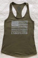 "UNDEFEATED" WOMENS RACERBACK TANK - MILITARY GREEN